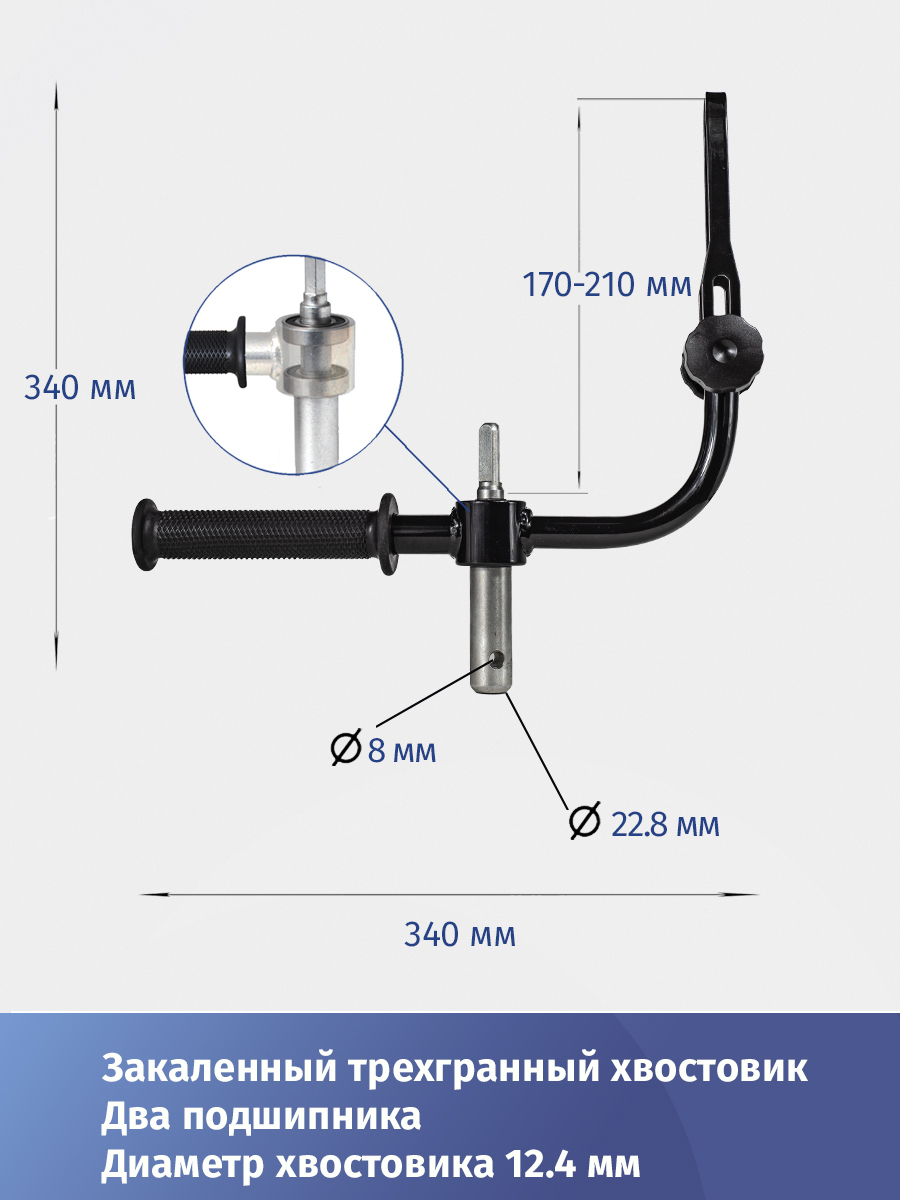 Адаптер предназначен для шнеков серии Айсберг и Ультралайт. Для фиксации шуроповерта используется стальная скоба, таким образом, получается жесткая конструкция, которая предотвращает выкручивание рук при заклинивании ледобура. Регулировка длины скобы позволяет использовать данный адаптер с большинством популярных среди рыболовов шуруповертов.