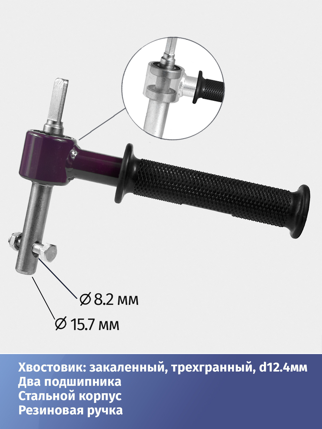 Для фиксации адаптера используется винт М8. Хвостовик адаптера закрепляется в патрон шуруповёрта.
