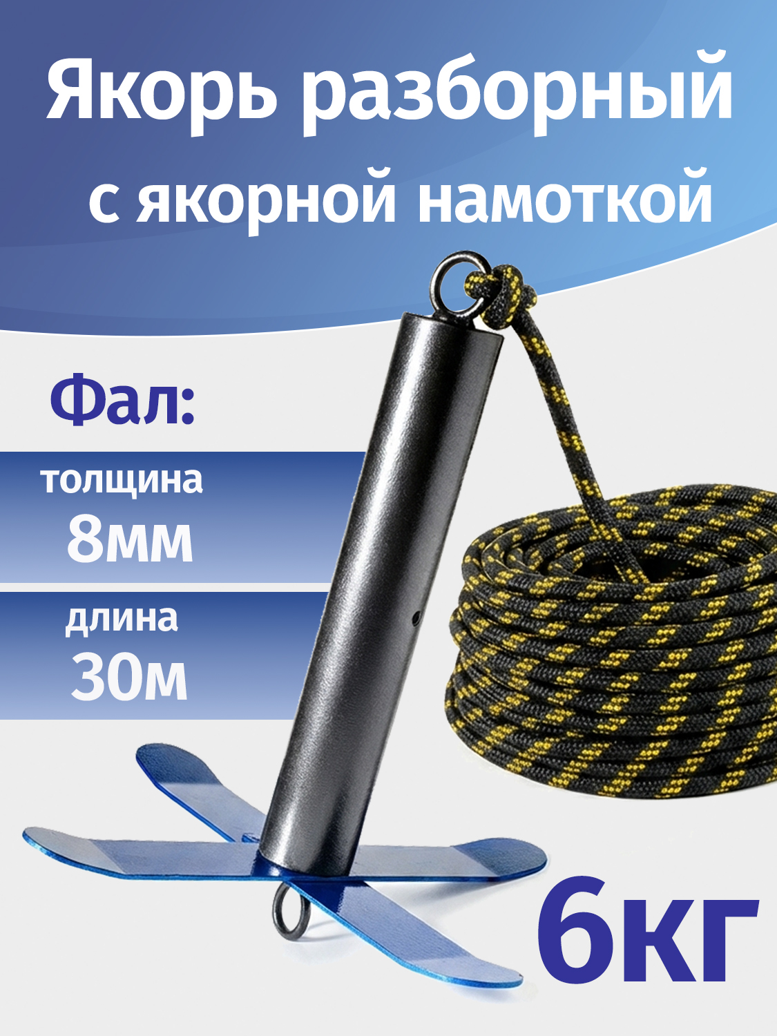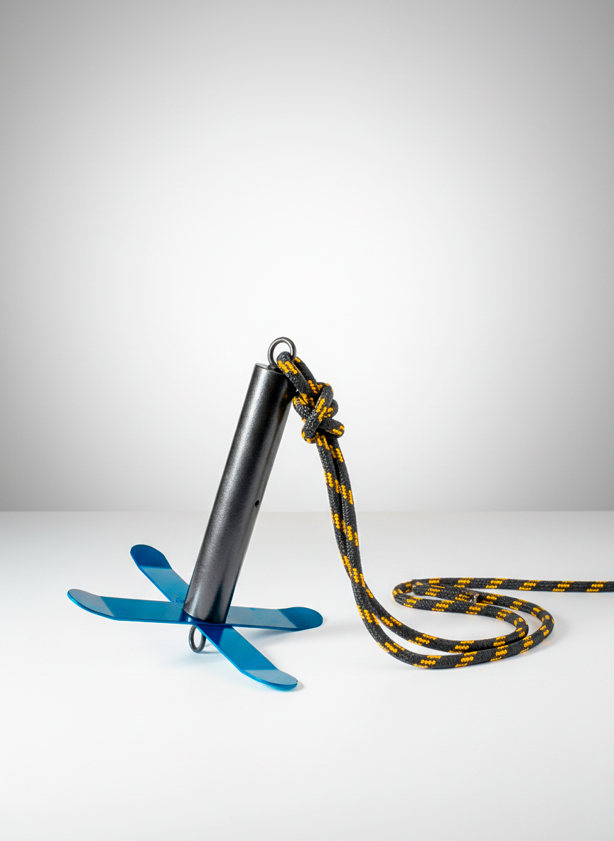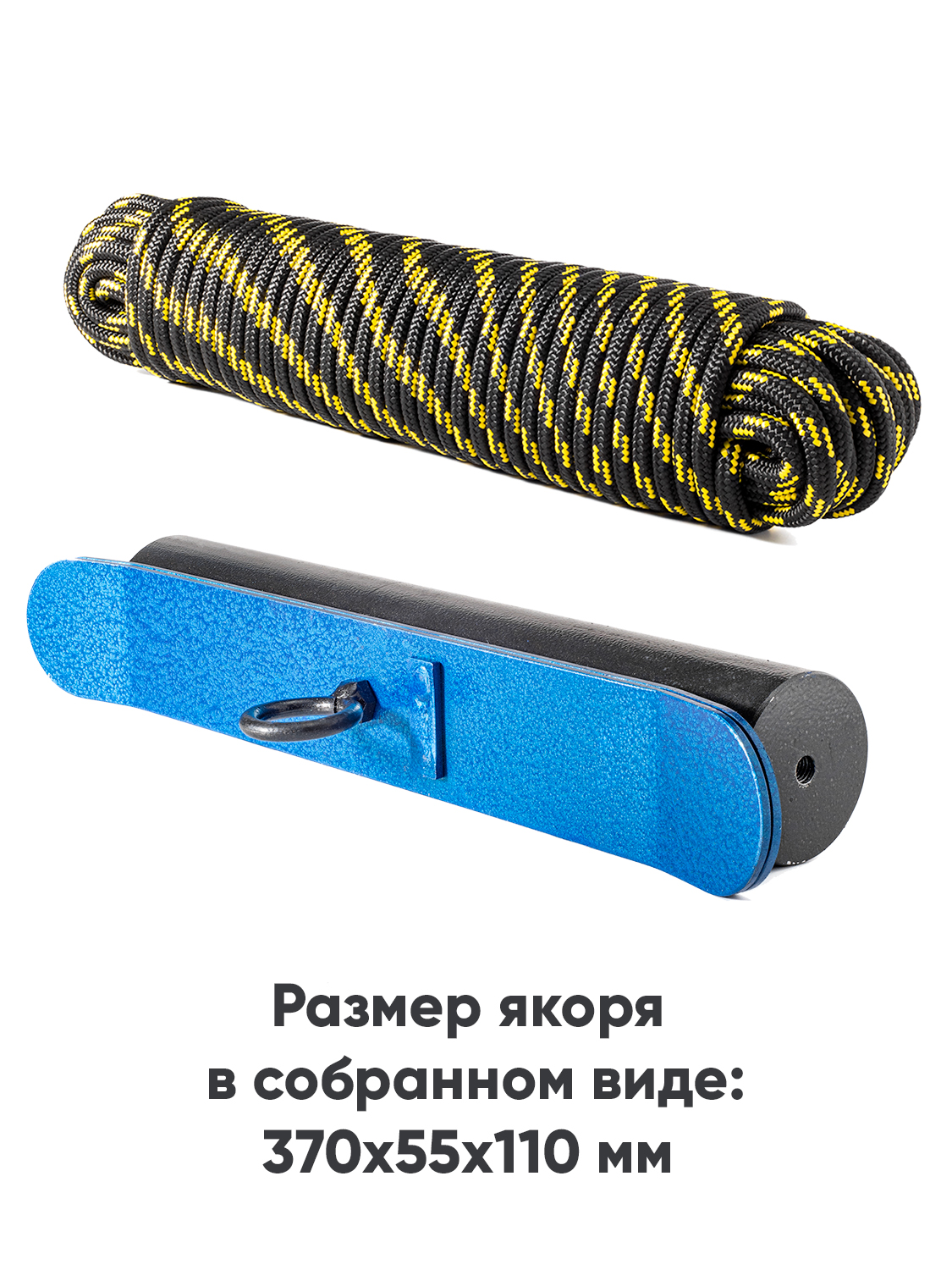 Простой и удобный комплект якоря с якорным фалом поможет вам надежно зафиксировать лодку на воде.