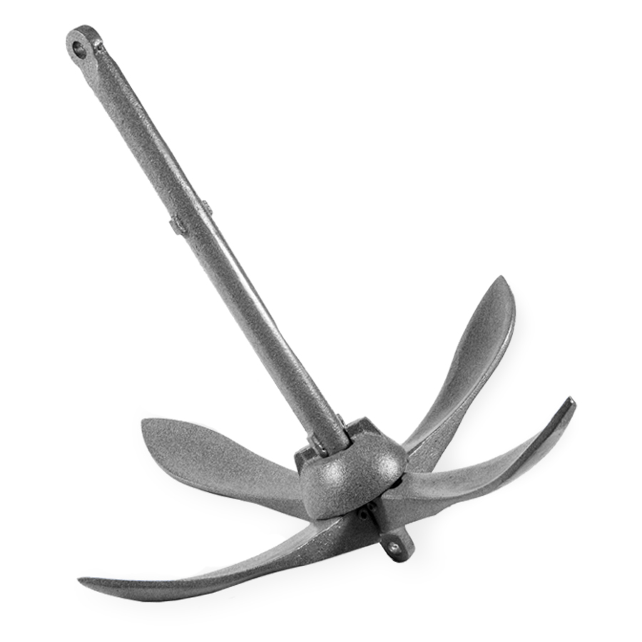 Простой и удобный комплект якоря с якорным фалом поможет вам надежно зафиксировать лодку на воде.