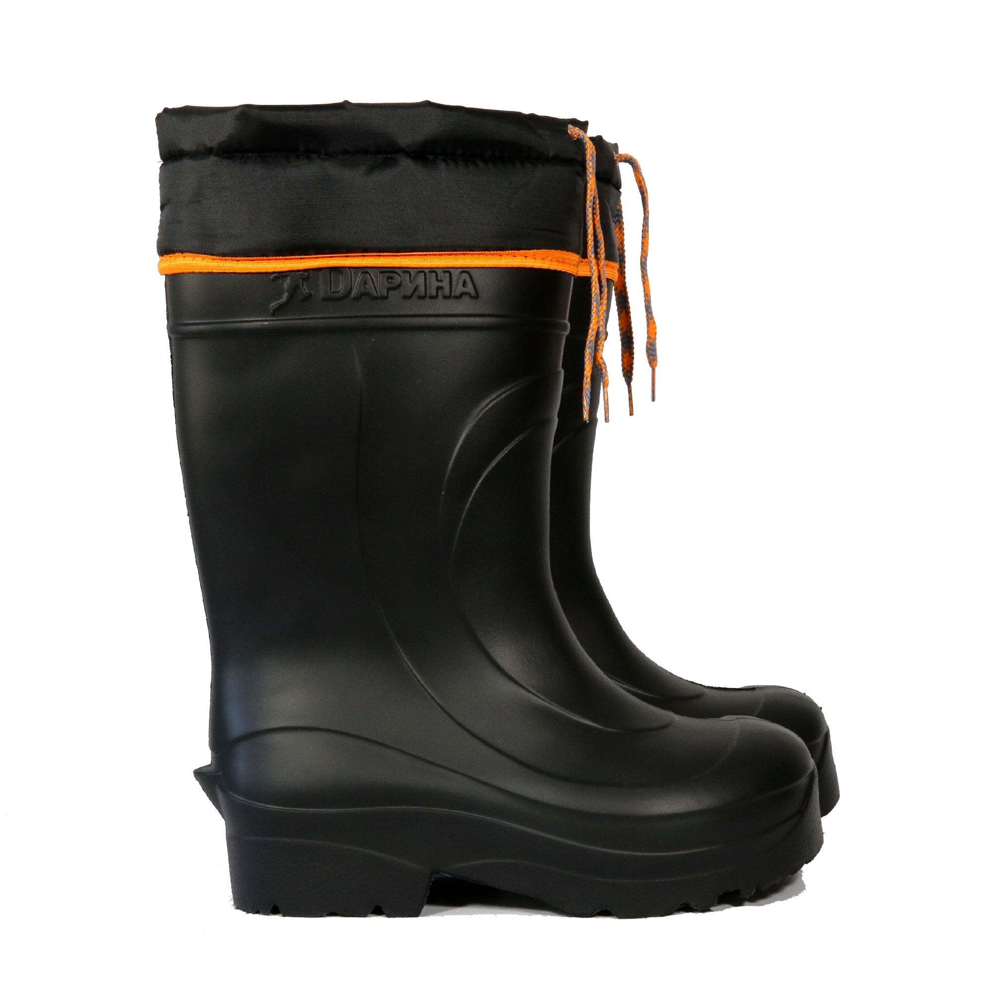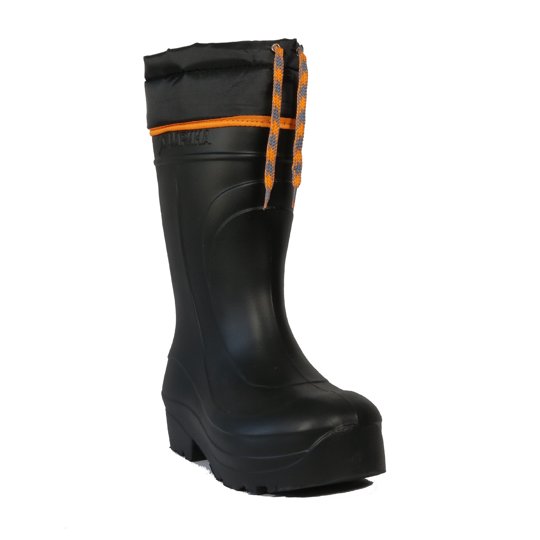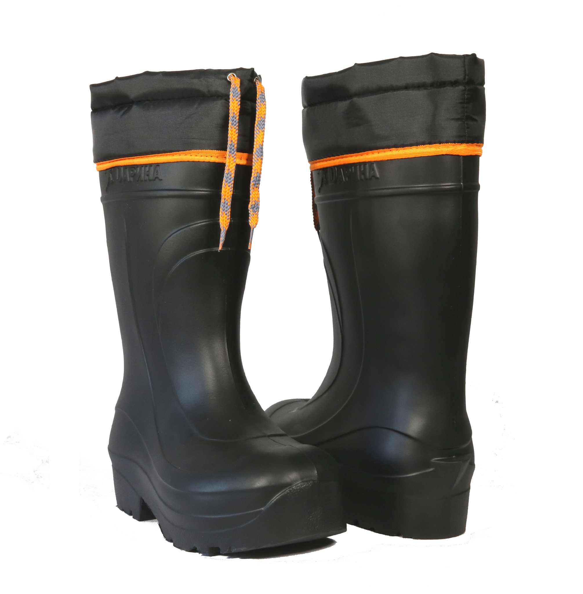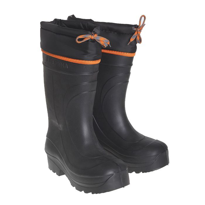 Вспененный этиленвинилацетат (ЭВА), из которого изготовлены сами сапоги, делают их абсолютно водонепроницаемыми, а толстая рифлёная подошва помогает держать равновесие на льду.