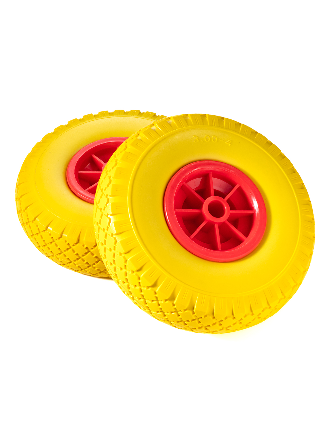 Комплект бескамерных полиуретановых колес, предназначен для транцевых колес ПВХ лодок, тачек, тележек.