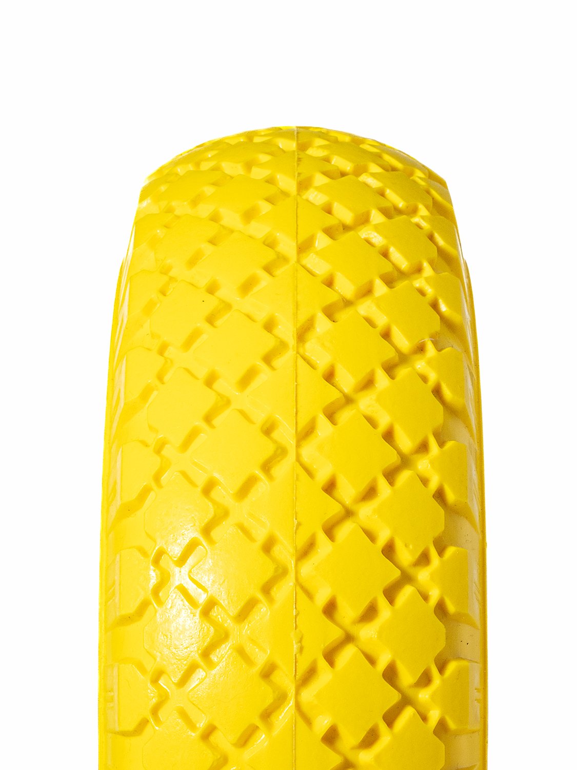 У полиуретанового колеса нет камеры, поэтому его не надо накачивать и следить за давлением, соответственно оно не подвержено проколам и разрывам камеры. Материал обода - пластик устойчив к коррозии и воздействию воды, что продлевает срок службы изделия.