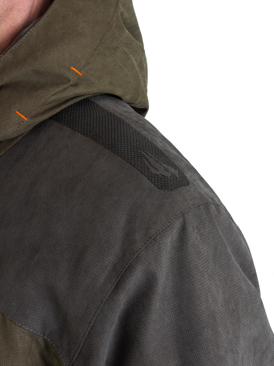 • Высокий ворот капюшона: надёжно защищает шею и подбородок от холодного ветра.
