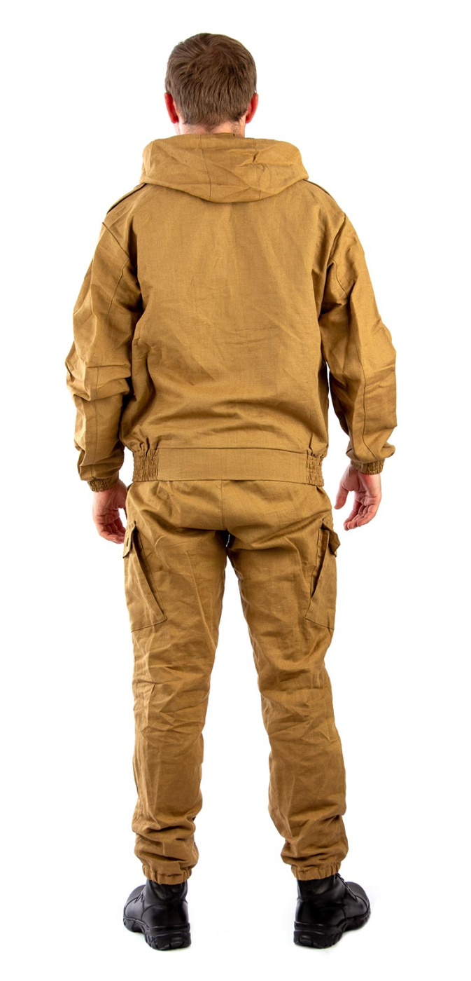 Капюшон регулируется по объему. Два нагрудных кармана застегиваются на пуговицы, два нижних кармана дополнены листочками, защищающими от попадания лесного сора, и надежно закрываются на молнии. Куртка дополнена погонами.