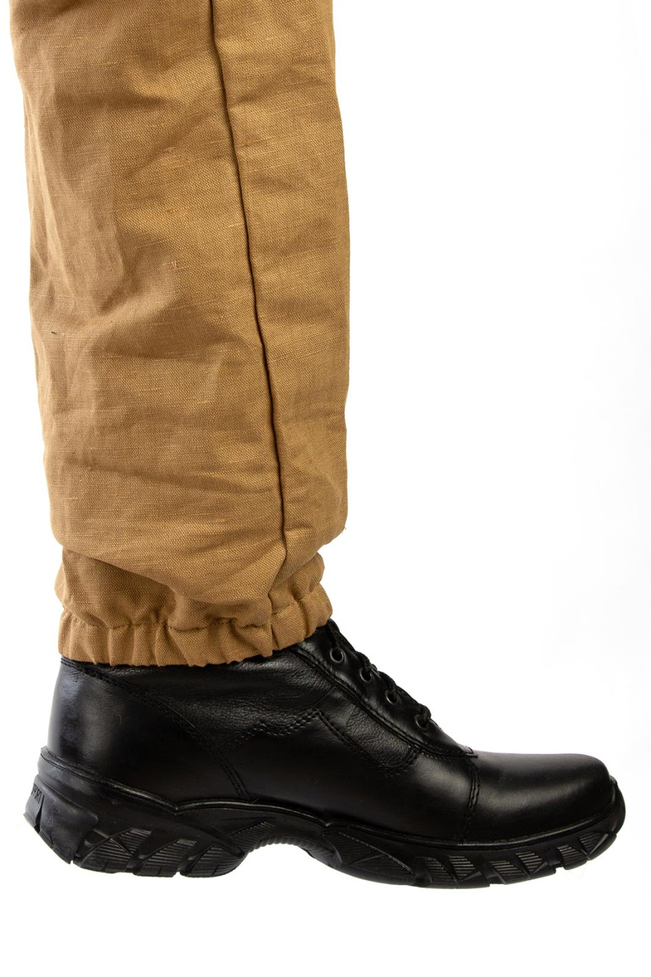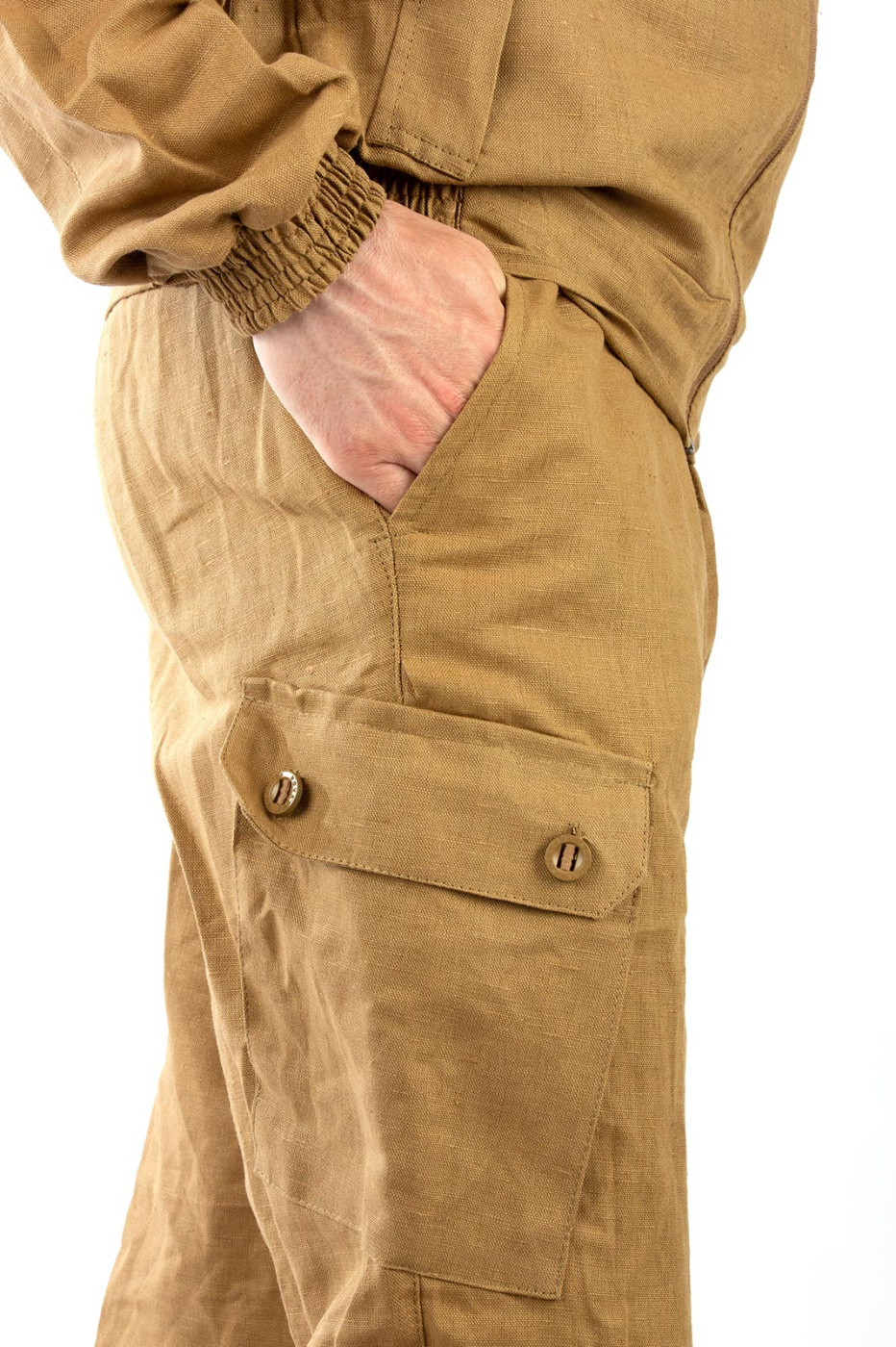Пояс брюк удобных свободного кроя брюк собран на резинку. Брюки дополнены объемными накладными карманами на пуговицах и карманами у пояса.