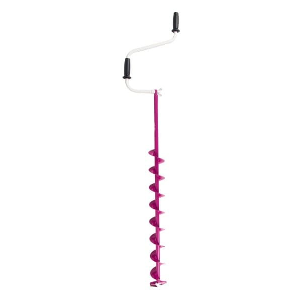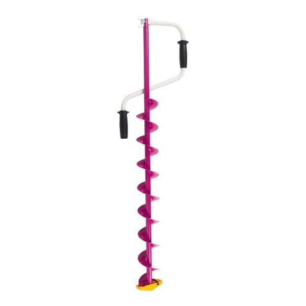 Верхняя рукоятка ледобура смещена относительно оси ледобура на 105 мм, а нижняя на 165 мм. Такое расположение рукояток позволяет вращать ледобур одновременно двумя руками, тем самым увеличивая скорость бурения лунок во льду.