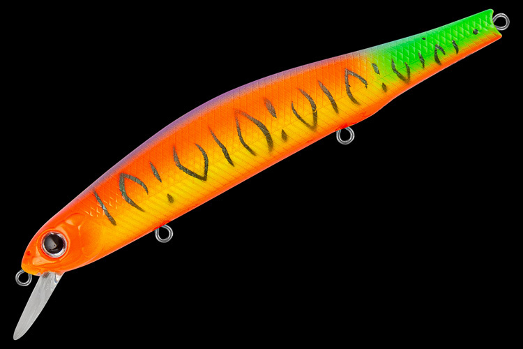 Технические параметры: Суспендер (SP) , длина 110 мм, вес 17.5 гр, заглубление 0.8 - 1.2 метра. Минноу для облова больших водных территорий с фоновыми глубинами до 3.0 метров. Особенности дизайна: WATSON 110SP имеет две, разделенные боковой линией, рельефные фактуры поверхности. Верхняя часть выполнена в виде ромбовидных насечек , нижняя- в виде косых насечек. Головная часть воблера рельефно имитирует жаберные крышки рыбки, а 3D глаза дополняют реалистичность дизайна всей приманки.