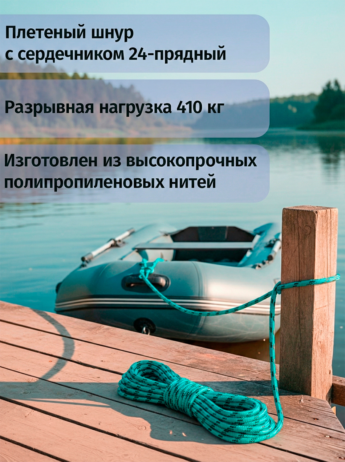 Шнур плетеный с сердечником 24-прядный из высокопрочных полипропиленовых нитей.