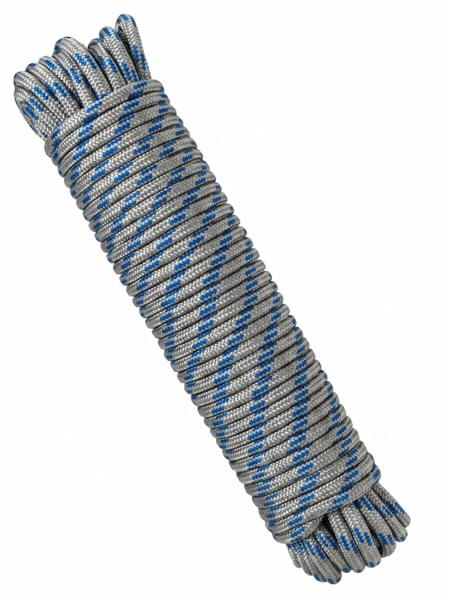 Шнур плетеный с сердечником 24-прядный из высокопрочных полипропиленовых нитей.