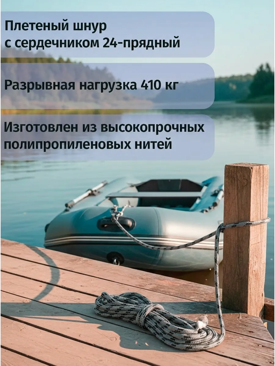Шнур плетеный с сердечником 24-прядный из высокопрочных полипропиленовых нитей.
