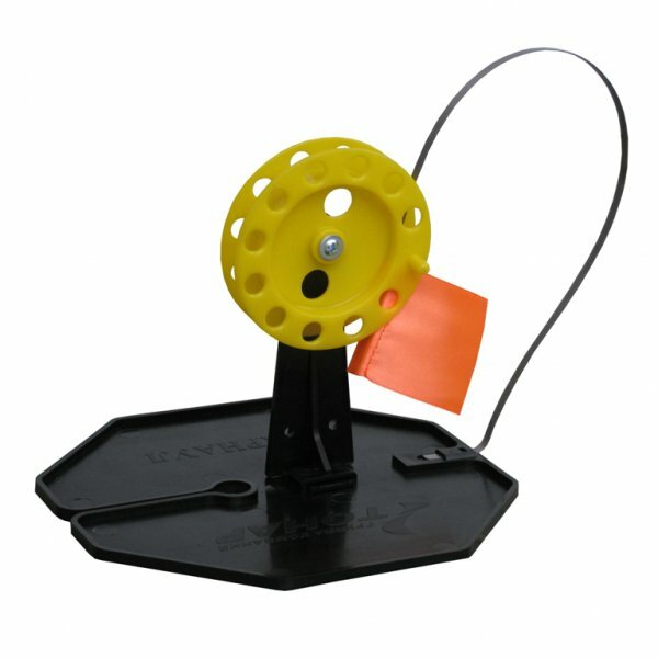 Яркая расцветка катушки и флажка помогает быстро увидеть сработку в зимних условиях.