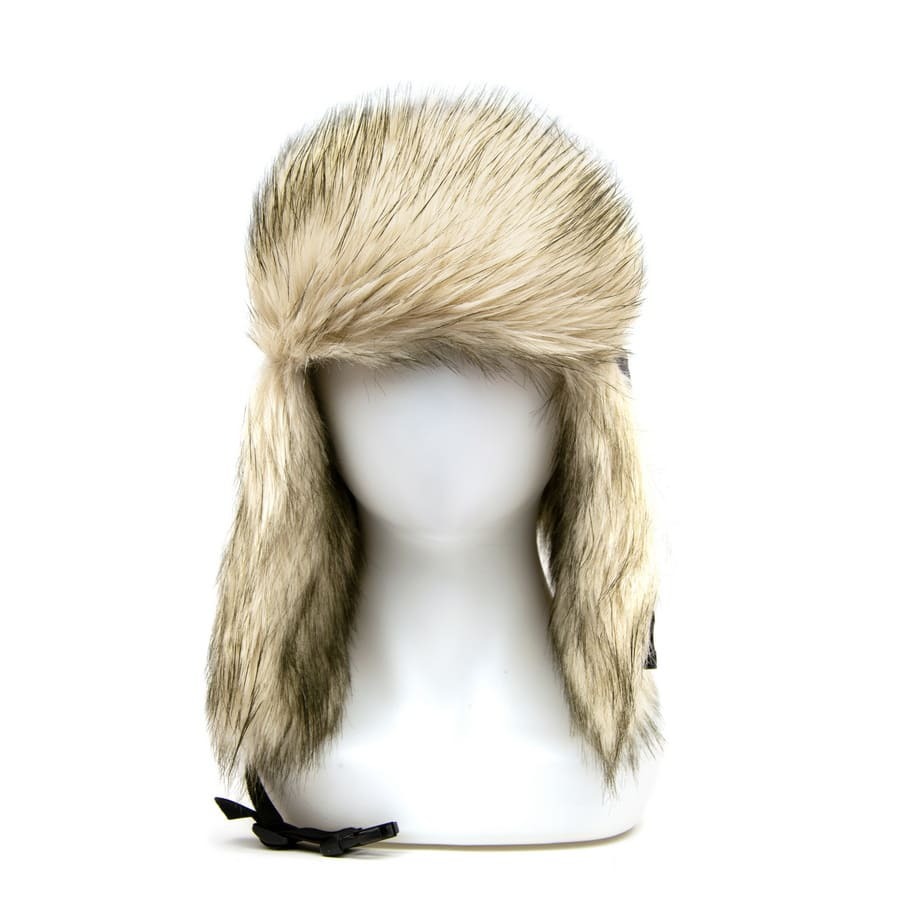 Мужская ушанка с искусственным мехом. Мех натурального цвета. Внутри у шапки имеется утепленный подклад.